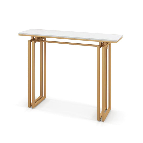 110CM FAUX MARBLE CONSOLE TABLE WITH STURDY METAL LEGS GOLDEN Bring a new hallway appearance with this modern entryway table. This faux marble tabletop table brings modern flair and stores a variety of things, giving you a tidy space.