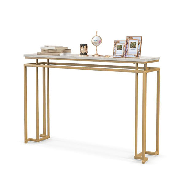 120 CM FAUX MARBLE TOP CONSOLE TABLE WITH ANTI TOPPLING KIT This stylish entryway table features a gold metal frame that complements the elegant marble top. The heavy-duty metal frame is powder coated to ensure long-lasting stability and durability.