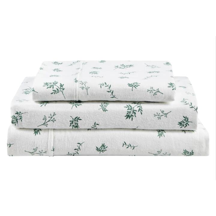 150GSM Leaves Print Flannelette Bed Sheet Set – Green, Single