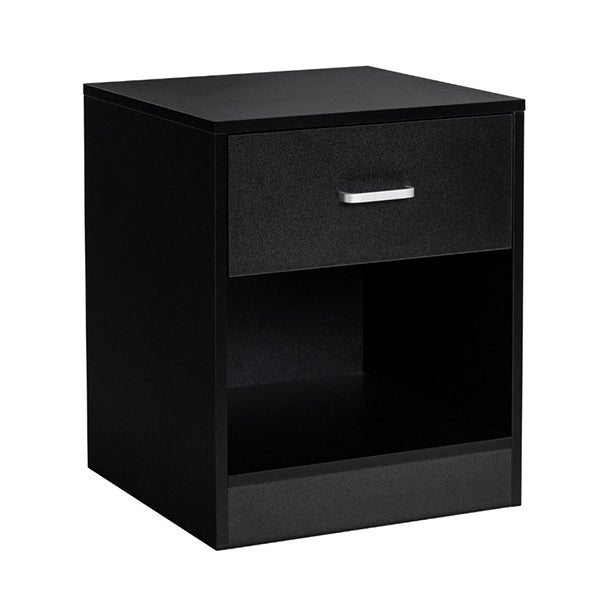 2 Tier Wooden Bedside Table With Storage Drawer Cabinet Black