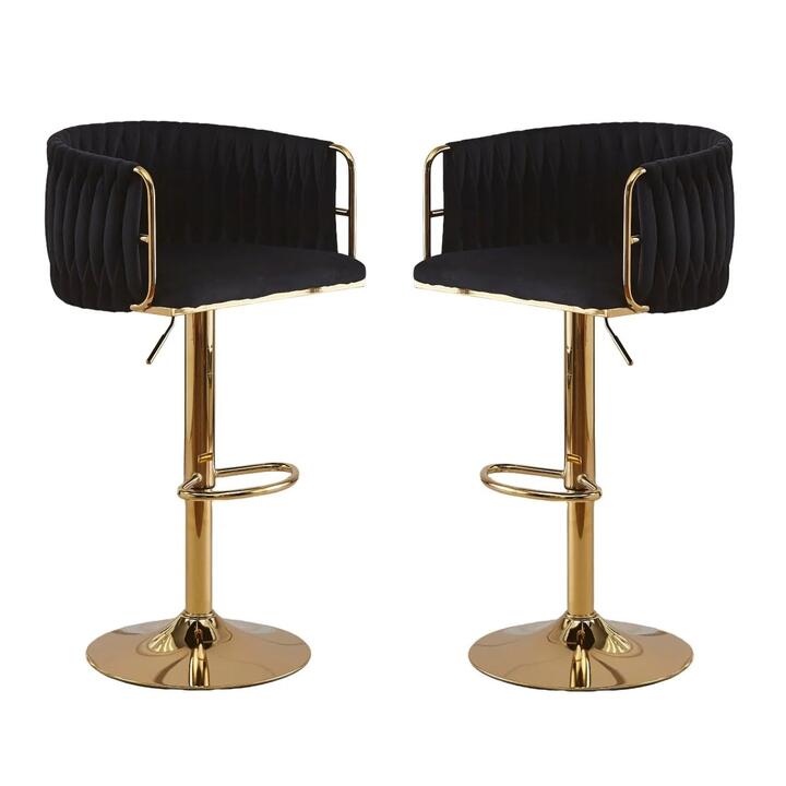 2x Height Adjustable Black Swivel Bar Stool Velvet Golden Round