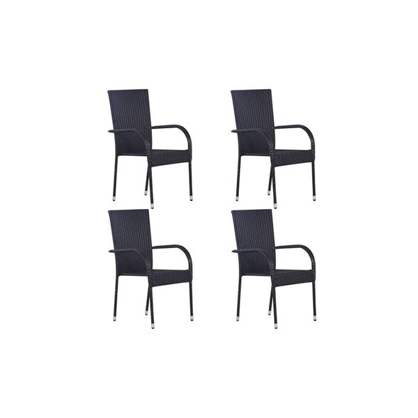 4 Pcs Poly Rattan Stackable Outdoor Chairs Black