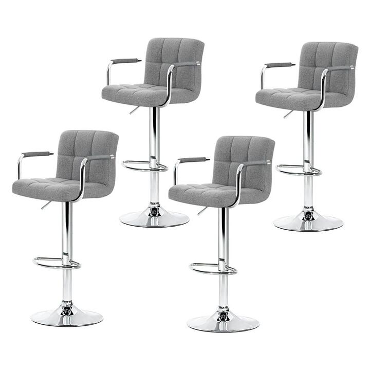 4x Bar Stools Fabric Gas Lift w/Armrest Grey