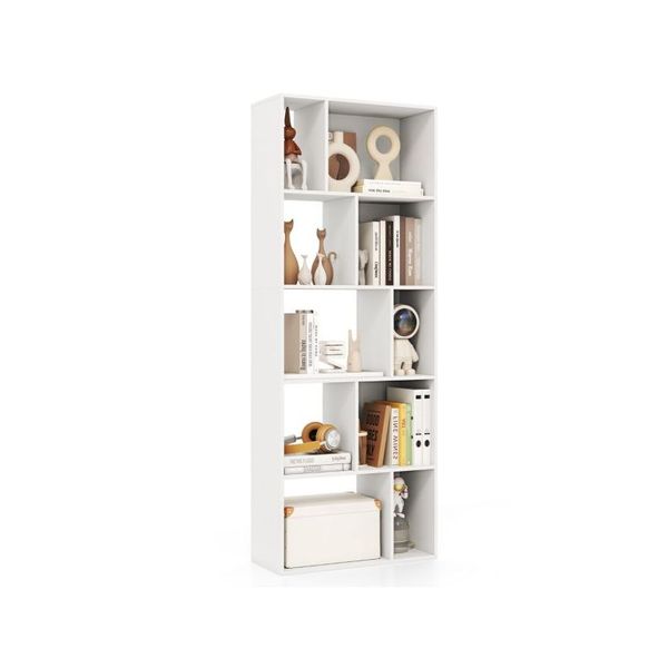 5 TIER BOOKSHELF WITH 10 COMPARTMENTS AND FLOOR STANDING ROOM DIVIDER The five-tier structure and 10 open storage compartments provide plenty of space for your everyday items and allow you to display favorite collections or decorative items.