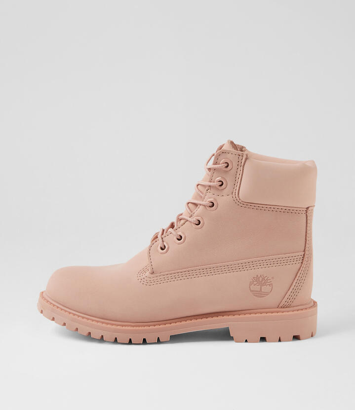 6 Premium Icon Womens Light Pink Nubuck Lace Up Boots