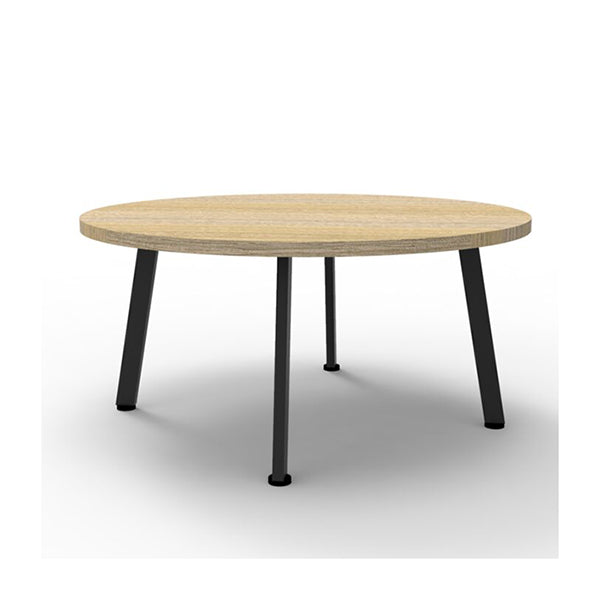 900MM ROUND SERENITY COFFEE TABLE NATURAL OAK The serenity coffee table has a sleek and seamless design. The Table features a powdercoat frame in black, promoting style and durability. Backed by a 5-year warranty.
