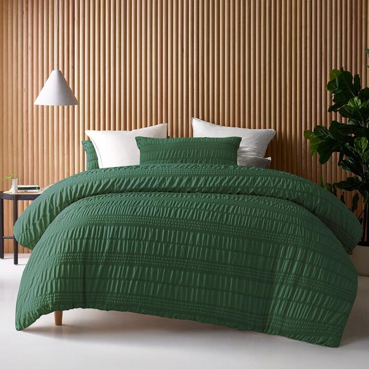 Give your bedroom a tidy and effortless look with the Accessorize Seersucker Hunter Quilt Cover Set, designed to keep your bed neatly arranged while adding a polished touch. Its practical design simplifies daily bed-making, making your bedroom feel organised and inviting.