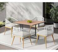 Create an inviting outdoor dining area with the Almora 4 Seater Outdoor Dining Table and Chair Set. This stylish set is designed to combine elegance with practicality, making it perfect for entertaining guests or enjoying family meals outside.