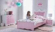 Your little one deserves only the best, they’re royalty after all! Finished in a beautiful combination of glossy white and pale pink, it’s a bed every young one is sure to love. Made with a crown shaped headboard with rhinestones, the Amirah Single Bedroom Package is everything they n
