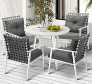 Elevate your outdoor dining experience with the Anhur Grey 4 Seater Outdoor Dining Set. This stylish and contemporary set features a durable steel frame and a stunning white stone compound tabletop, perfect for enjoying meals under the sun or stars.