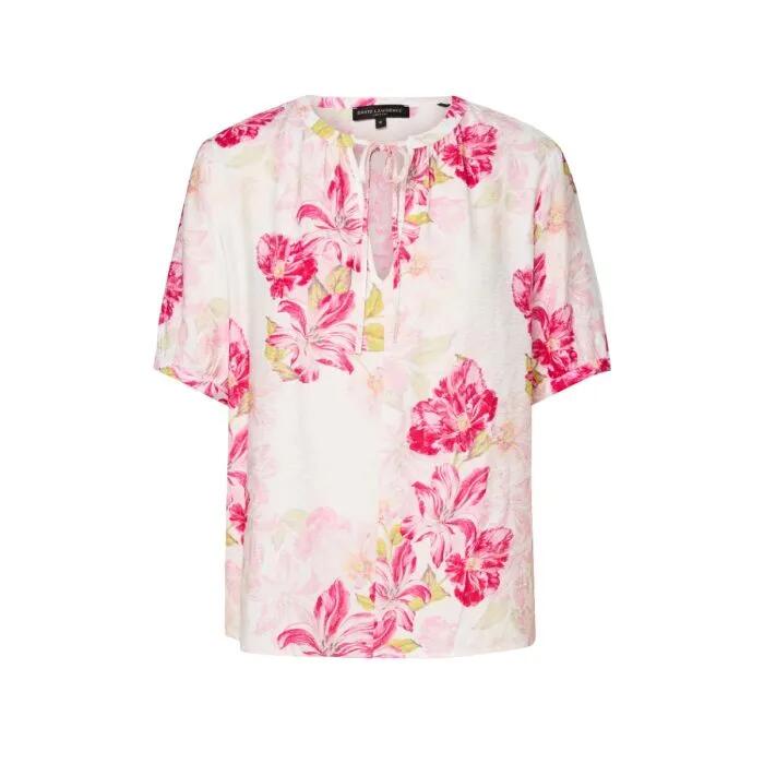 The Argon Linen Blend Blouse in Ivory Multi is a light and versatile shirt with subtle, stylish details. Designed in a regular fit, it features short sleeves, a V-neckline, and a soft tie for a feminine finish.