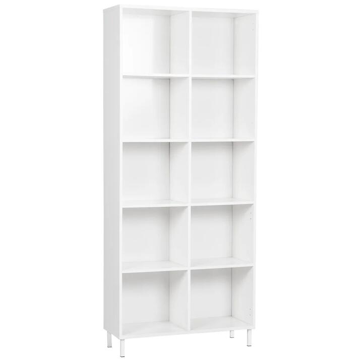 The 10-cubby bookcase delivers plenty of storage and contemporary style to virtually any room in the home. From the living area to the bedroom to the home office, this bookcase features five divided shelves that create the perfect way to get organized.