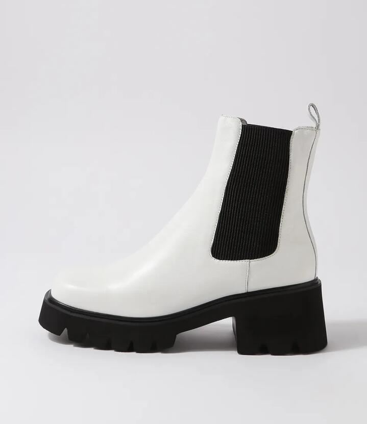 Barakios White Black Leather Elastic Ankle Boots