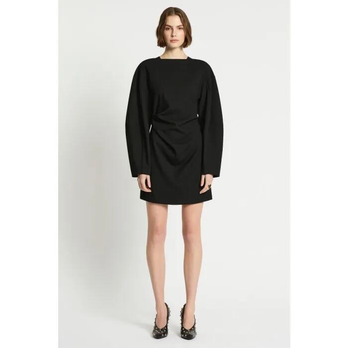 The Baroque Dress in Black exudes elegance with its relaxed fit and sophisticated design. Featuring dropped shoulders, long sleeves, and a flattering mini length, this dress is perfect for any occasion.