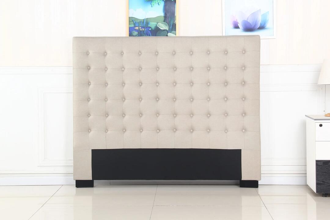 Bed Head Queen Beige Headboard Upholstery Fabric Tufted Buttons