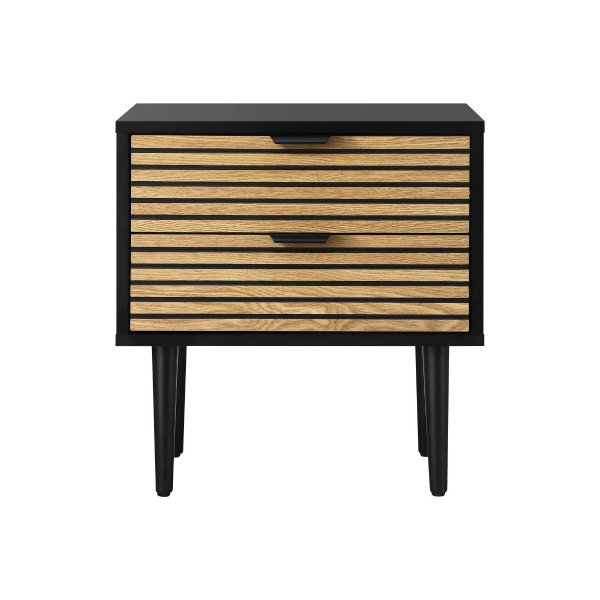 Bedside Table 2 Drawers Metal Handle Black & Wooden