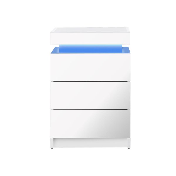 BEDSIDE TABLE RGB LED NIGHTSTAND CABINET 3 DRAWERS SIDE TABLE FURNITURE WHITE One can imagine what it would be like without a bedside table by your bed. Disorganized. Messy. Untidy. And even pandemonium.