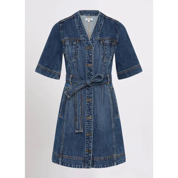The Bennet Denim Mini Dress by Marcs is a fresh take on casual cool. Designed with short sleeves and a mini length, it features a V-neck, front button fastening, and a self-tie belt with belt loops to cinch the waist.