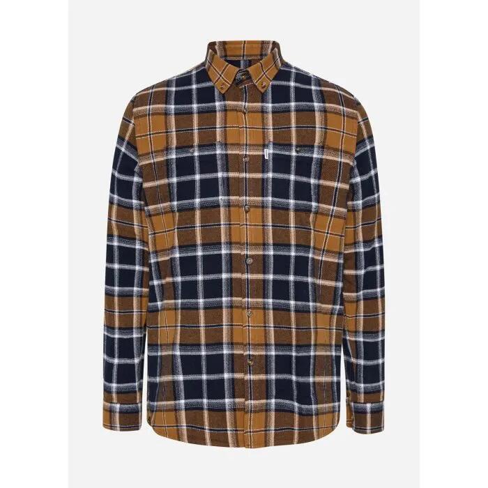 Layered over a tee or styled on its own, this long sleeve shirt looks undeniably gorgeous as it shows off a large scale check in shades of toffee and navy. Soft and breathable in pure cotton, the shirt works to create a regular fit, further complemented by contrast button detailing at the front f