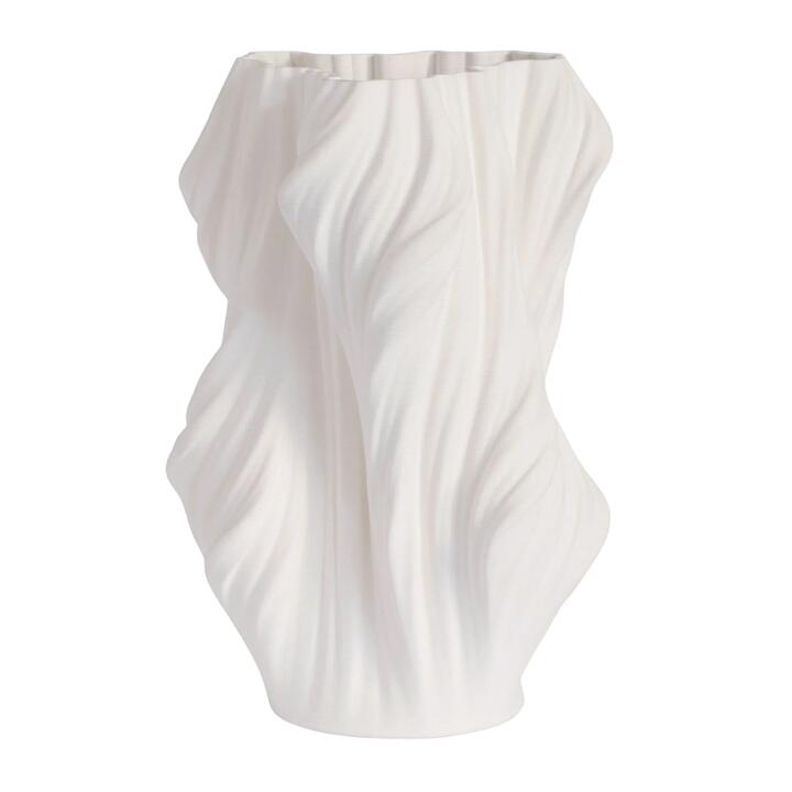 3D printed ceramic construction Sculptural flowing contours with textured detail Crisp white finish for versatile styling Suitable as statement décor or with dried arrangements