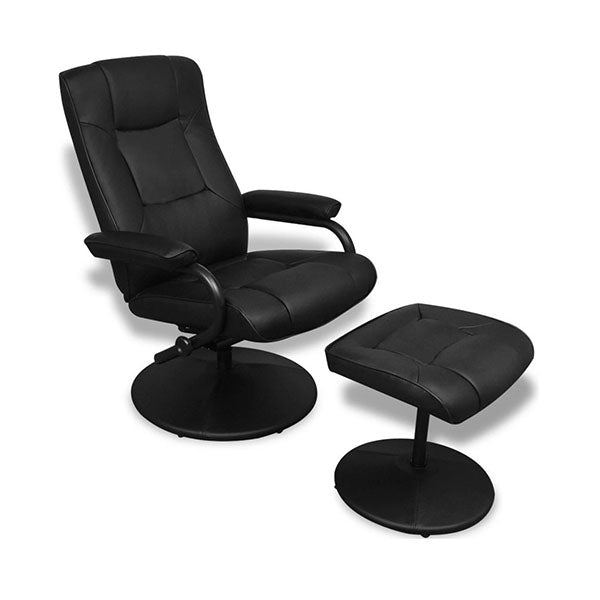 Black Artificial Leather Tv Armchair With Foot Stool