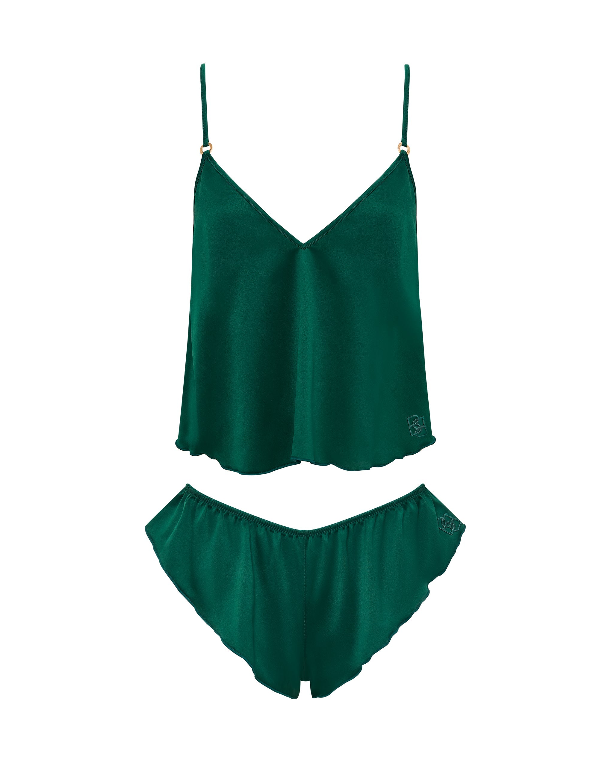 Up your nightwear game with the Faye cami and short set. This charming due showcases a flirty, provocative cut that flatters your shape, while the striking green hue adds a vibrant burst of colour to your collection, exuding a sense of playfulness and fun.