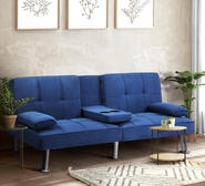 Transform your living space with the Breanne Blue 3 Seater Sofa with Cup Holder. This versatile sofa bed offers generous seating and can easily convert into a flat bed for daytime naps or nighttime slumbers.