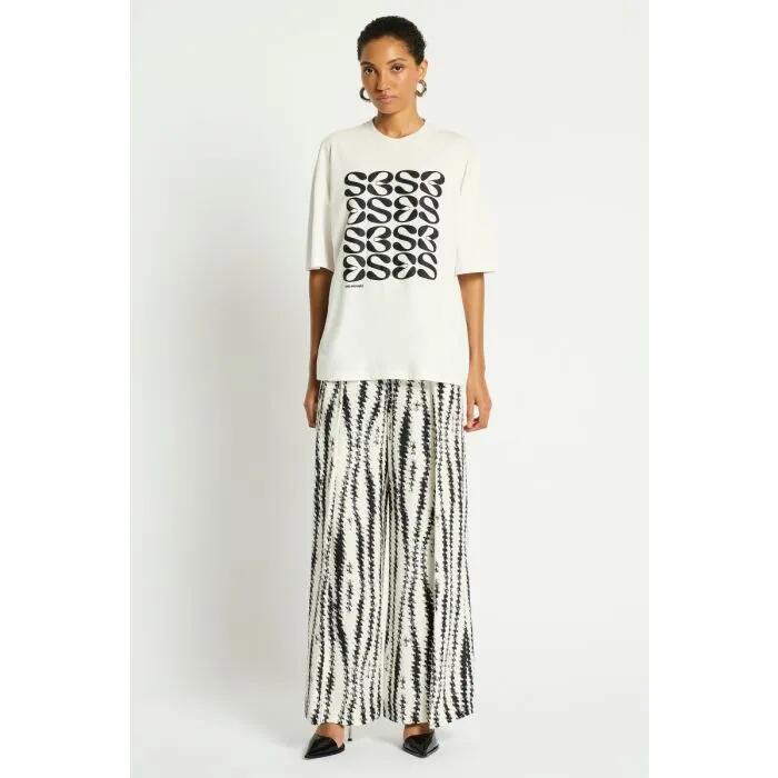 Step into effortless style with the Calix Pant in Print. Designed to sit at the waist, these pants feature a relaxed fit and wide leg for ultimate comfort. The full-length design is complemented by a fixed front waistband and a striking chunky silver metal zip detail.