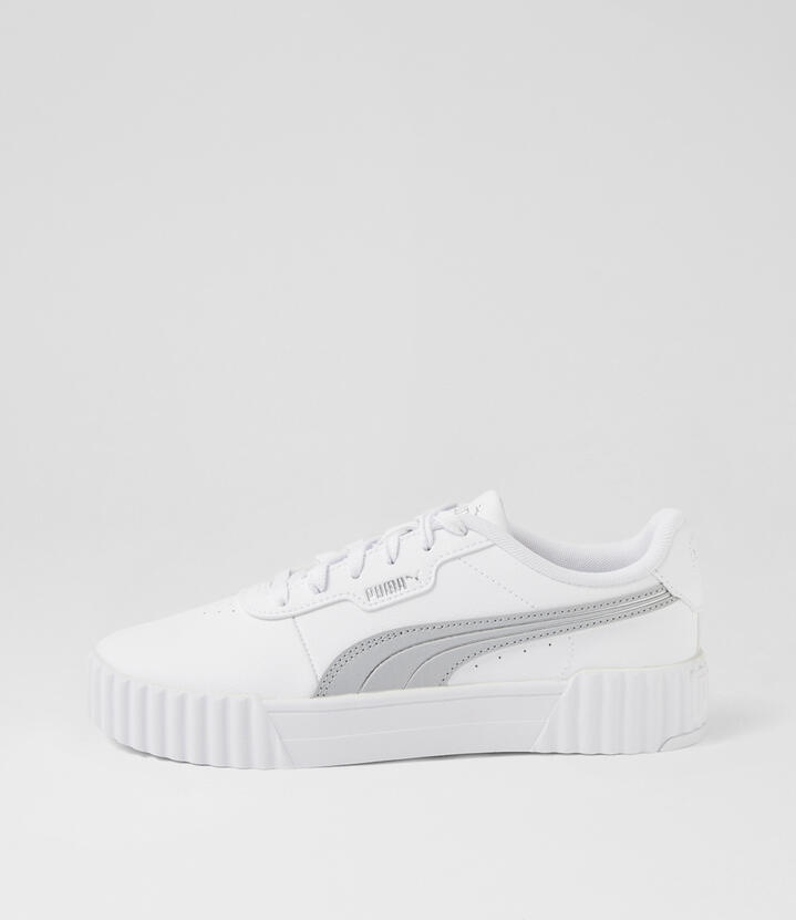 Ramp up your everyday looks with these on-trend leather sneakers by Puma. Capturing the spirit of 80 s tennis style, CARINA 3.0 AQUA METALLICS is your go-to for casual outfits.