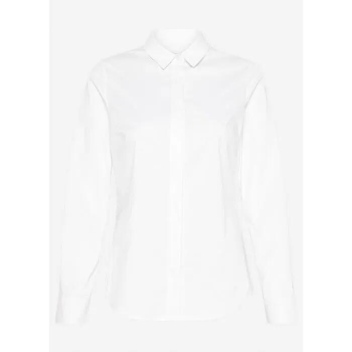 Fastening at the front with a hidden button closure, this shirt features classic shirt styling, with a traditional shirt collar and long sleeves with button-up cuffs. Creating a neat fit through the body and sleeves, the shirt is made from a cotton blend that is lightweight, with just a hint of s