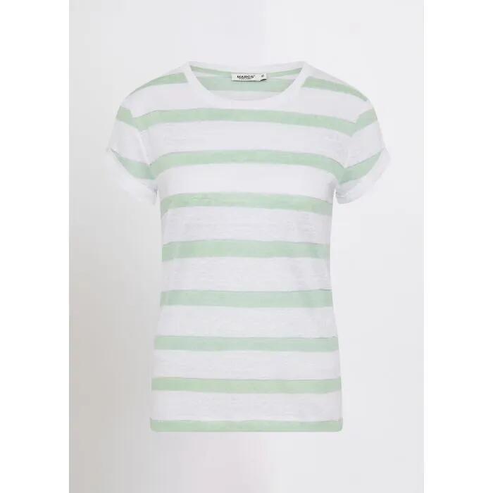 Elevate your wardrobe with the Cecillia Stripe Tee in a refreshing Green Stripe. This stylish top features short sleeves with a charming ruffle cuff and a classic crew neck. Made from soft pure linen, it offers comfort and breathability.