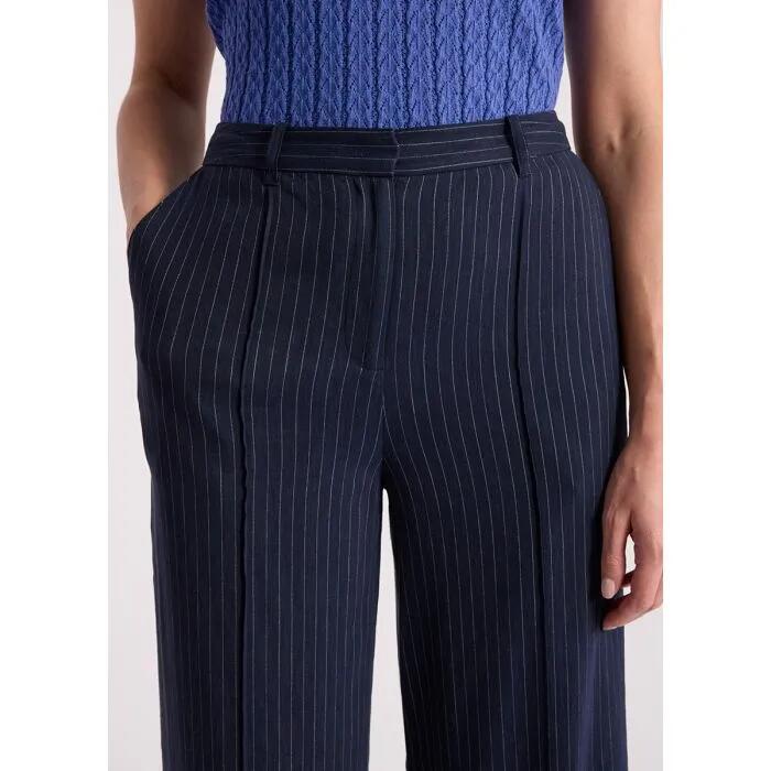 The Cindy Linen Blend Wide Leg Pant in Navy Stripe defines effortless summer tailoring. Cut from a premium linen-rich blend with a hint of stretch, it offers the breathability of natural linen with the added benefit of movement and drape.