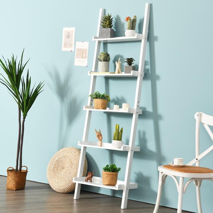 Costway5-Tier Display Rack Wall-leaning Bookshelf Sloping Plant Flower Stand-White