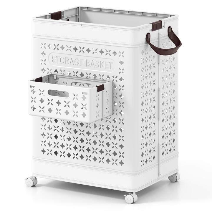 This large laundry basket comes with a bonus hanging basket for underwear. The compact design allows for easy folding and unfolding without the need for tools, making it perfect for small spaces. With handles and universal wheels, you can effortlessly move this basket around.