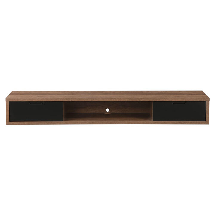 Criterion AIR1800DO Accessories Wall Mount Entertainment Unit Dark Oak Cabinet Two Black Painted Drawer Fronts Sound Bar/Component Space Cable Management Holes