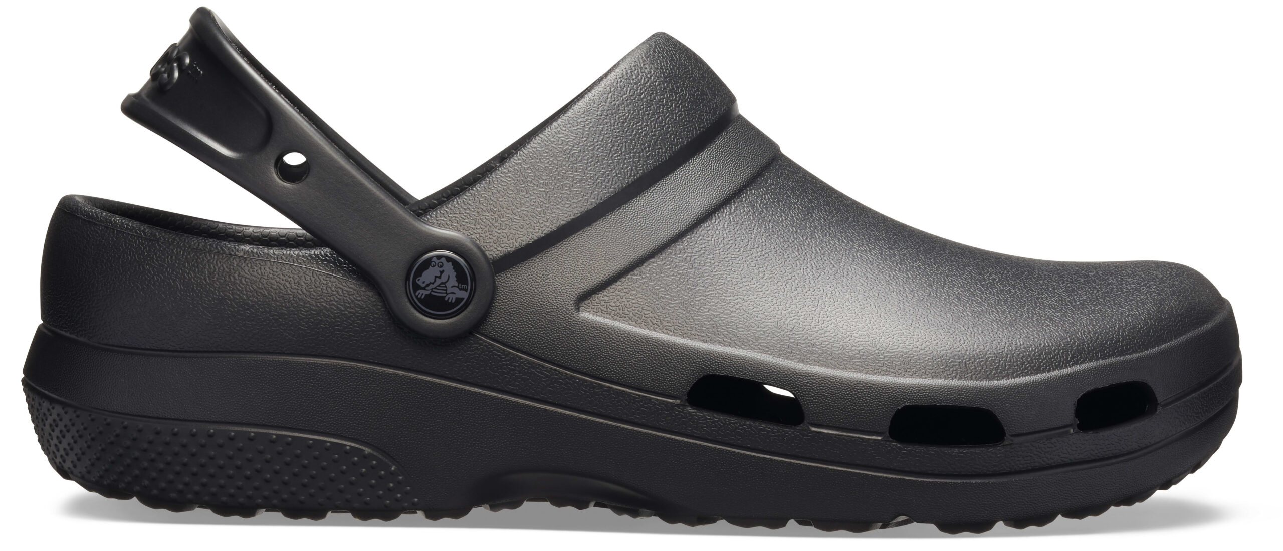 Certifiably Comfortable™ Do your shoes live up to your career specialty? Everything that makes Crocs so comfortable works overtime in these clogs from our Crocs At Work™ Collection, now featuring ventilating ports around the toe box to increase airflow and drain water or debris.