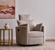 Experience ultimate comfort with the Cuddle Dove Swivel Recliner Armchair, designed with a removable headrest and curved back and armrests for optimal support. The neutral dove grey fabric is not only easy to maintain but also effortlessly complements any décor, making it an ideal addition to nu