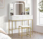 Indulge in a touch of glamour with the Decoris White & Gold Dressing Table Set. Designed with a celebrity-inspired LED lighted mirror frame, this set brings a sophisticated and luminous vibe to your daily beauty routine.