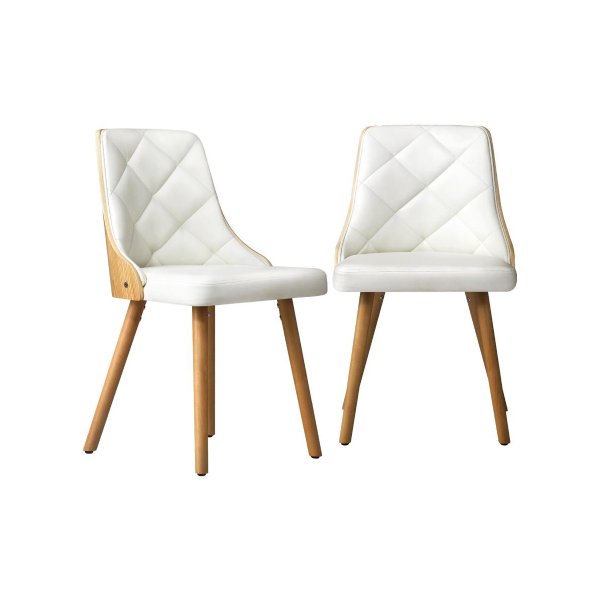 Dining Chairs Wooden Faux Leather Seat 2x White
