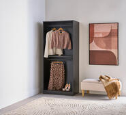 The Eden 2 Rails Short Black Hanging Wardrobe is a compact yet capable storage solution for your everyday essentials. Built from durable MDF and finished in a stylish ashy oak-look, it features two sturdy clothing rails that each support up to 15kg.