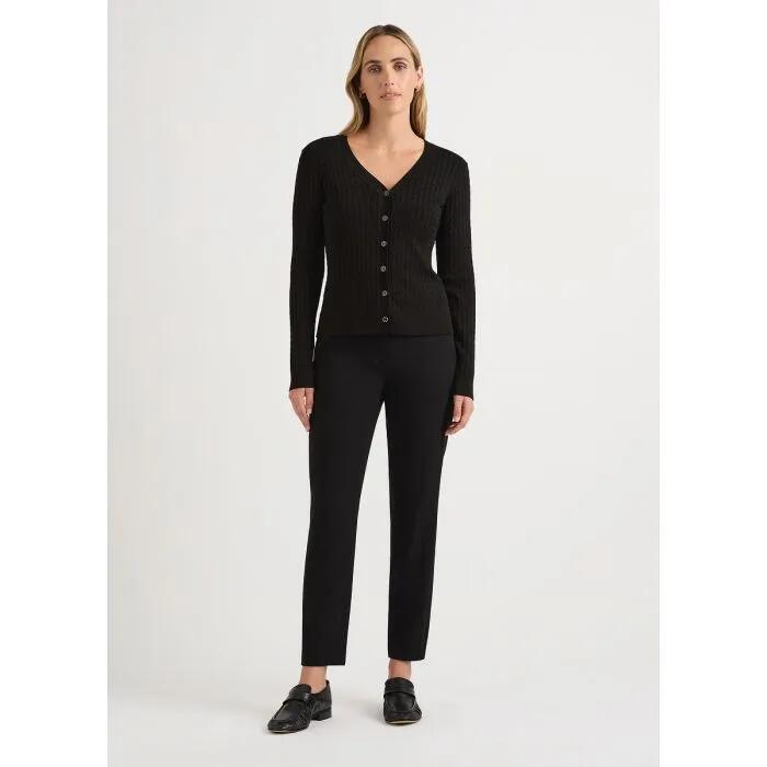 The Edna Tapered Pant in Black exemplifies sophistication and versatility, crafted from a breathable fabric that ensures comfort and ease of movement. Designed for various occasions, from work to weekend events, these pants feature a mid-rise fit that flatters the waist while providing a sleek si