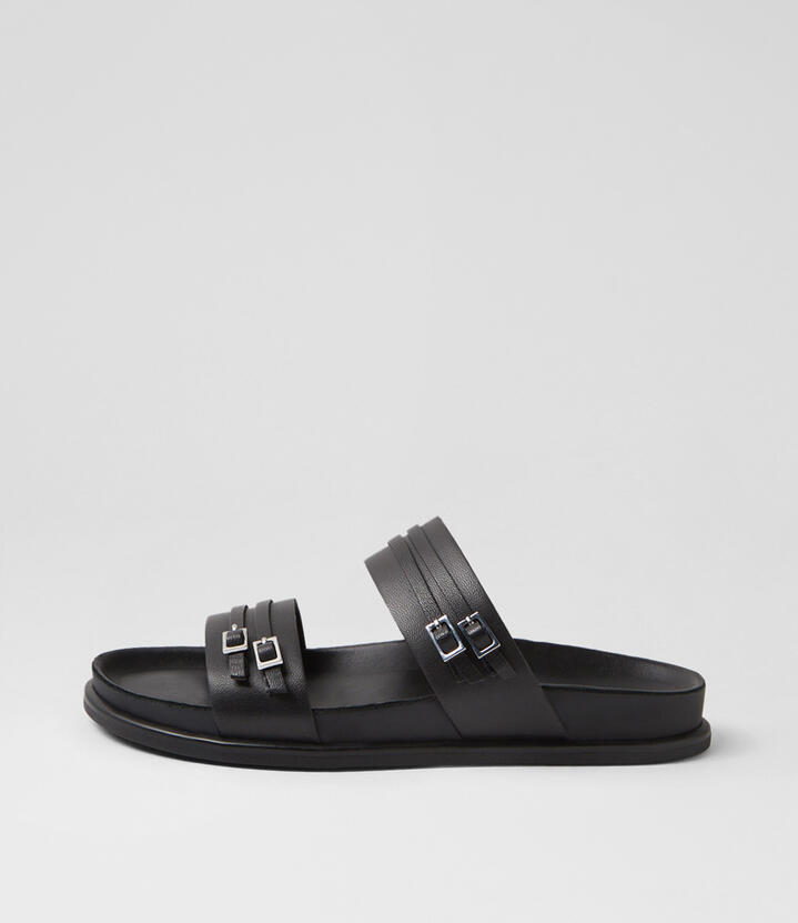 Effie Black Leather Slides