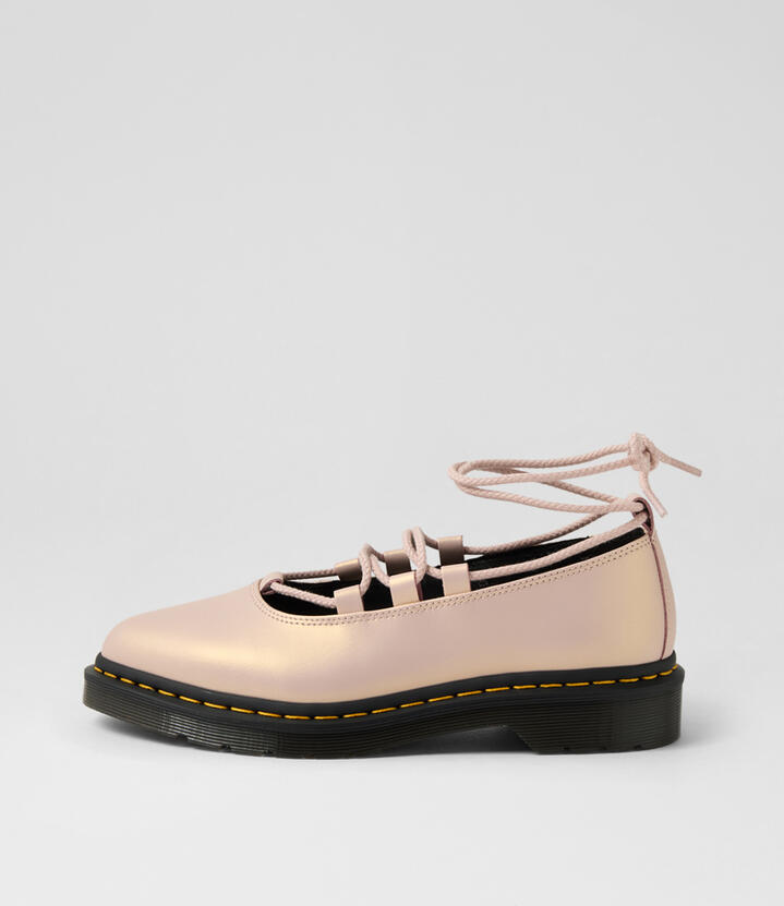 Elphie 2 Lace Up Powder Pink Gold Shift Leather Flat
