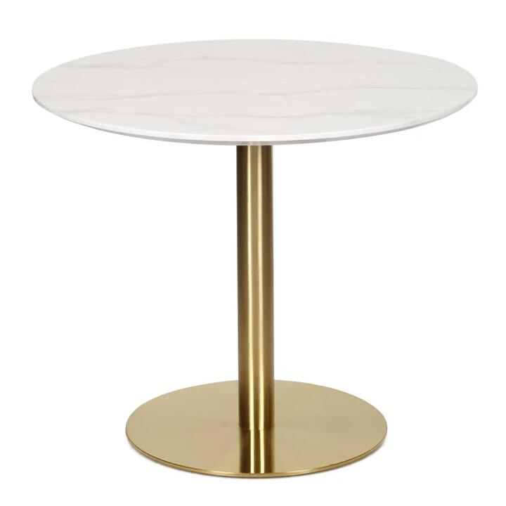 Elskar Round Dining Table With Marble Effect 90cm – Gold