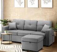 Transform your living space with the Elwine 3 Seater Storage Sofa with Ottoman, designed for comfort and functionality. Upholstered in plush linen fabric, this sofa features thick padded seats and backrests that provide a cozy, inviting experience while adding a timeless contemporary style to you