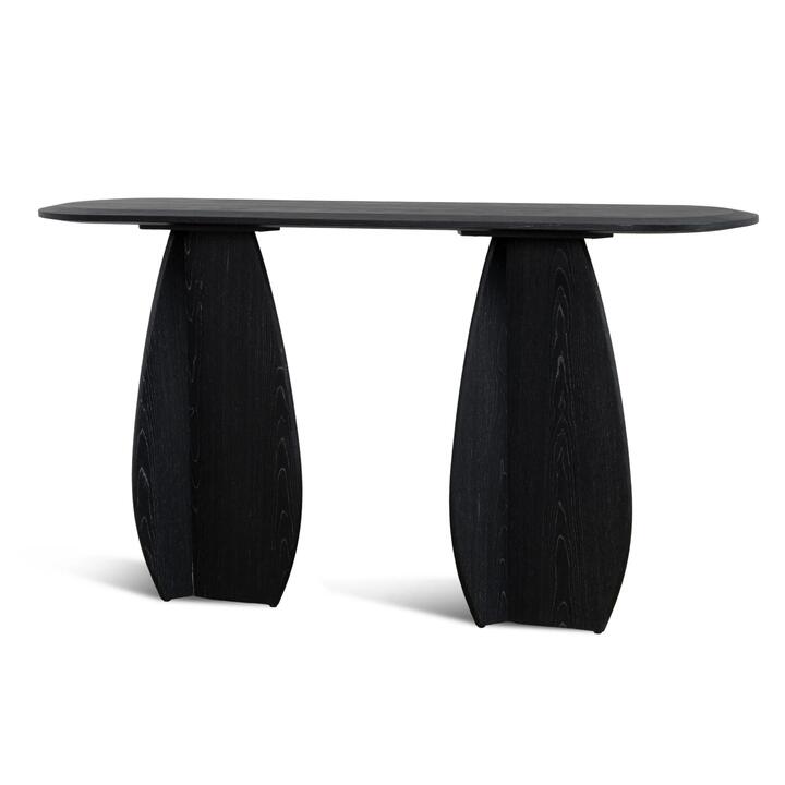 The Marnel 1.5m Oval Console Table – Black Oak brings refined dimension to hallways, living areas, and dining spaces.