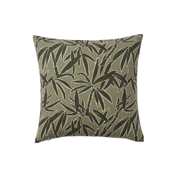 Upholstered in an olive linen fabric Knife edge seam detail Premium and vegan friendly microblend inner YKK zip concealed on reverse side Tropical printed design Square and compact yet generous in size Product Care: Hand wash recommended.