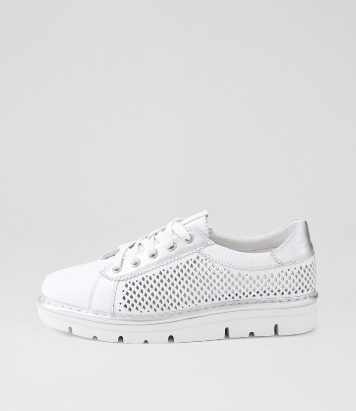 Exra White Silver Leather Sneakers