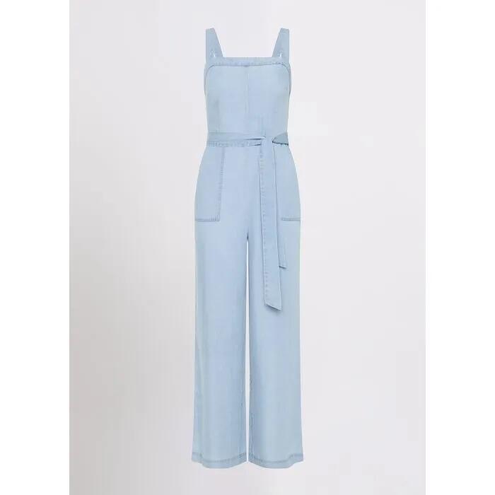 Introducing the Faerna Jumpsuit in a stunning chambray hue, perfect for effortless style. This sleeveless, full-length design features adjustable straps with a button fastening for a tailored fit. The invisible zip at the side seam adds a sleek touch, while the self-belt at the waist accentuates