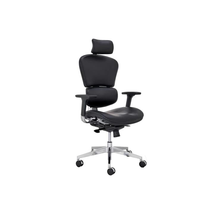 This chair has a sturdy build and is made with genuine leather. It also has a strong aluminium base, lumbar and back support, and an adjustable tilt locking and gas height lift mechanism. It has a weight capacity of up to 220kg.